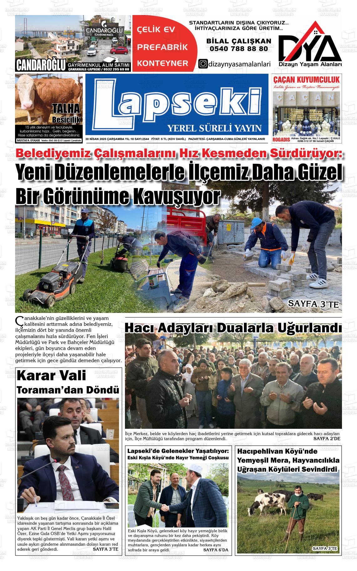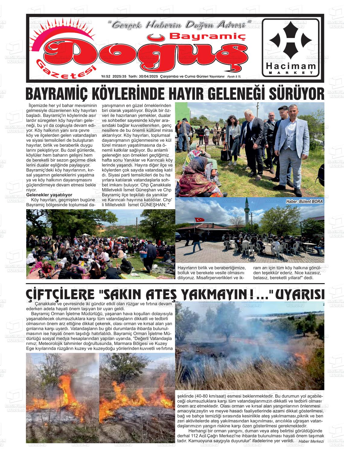 Çanakkale Yerel Gazeteleri 15 Nisan 2026, Çarşamba Günü Manşeti