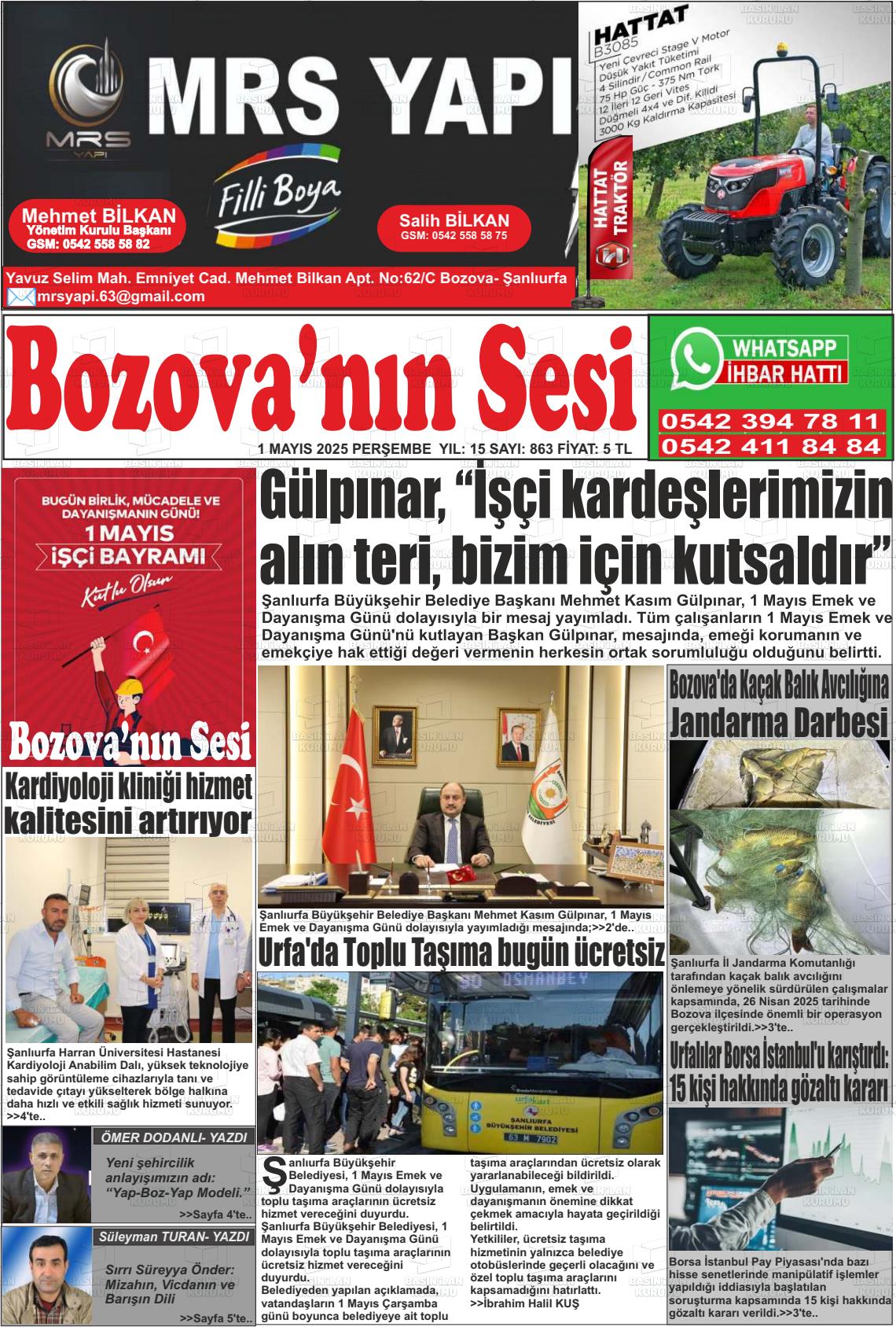 Şanlıurfa Yerel Gazeteleri 23 Nisan 2026, Perşembe Günü Manşeti